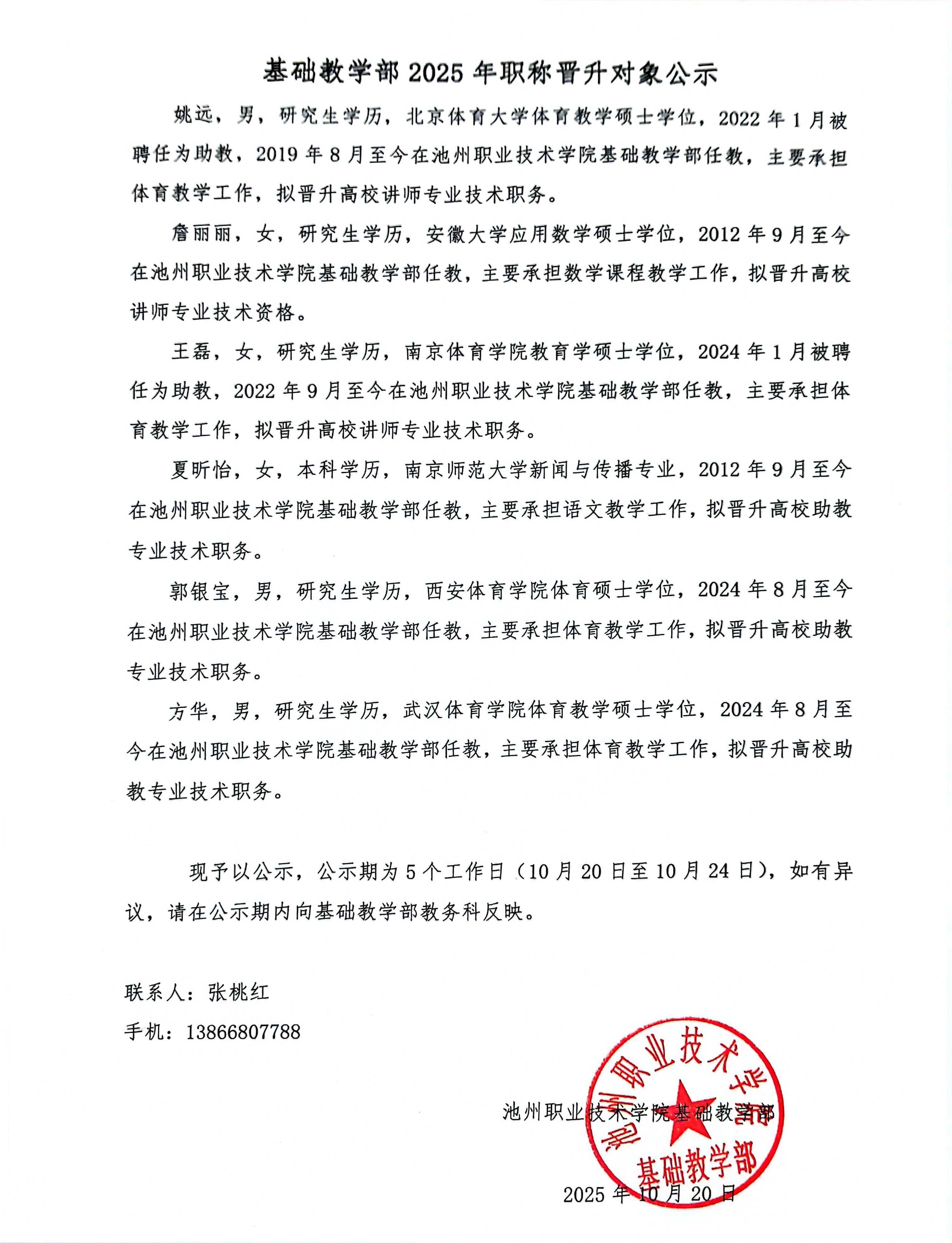 基础教学部2025年职称晋升对象公示
