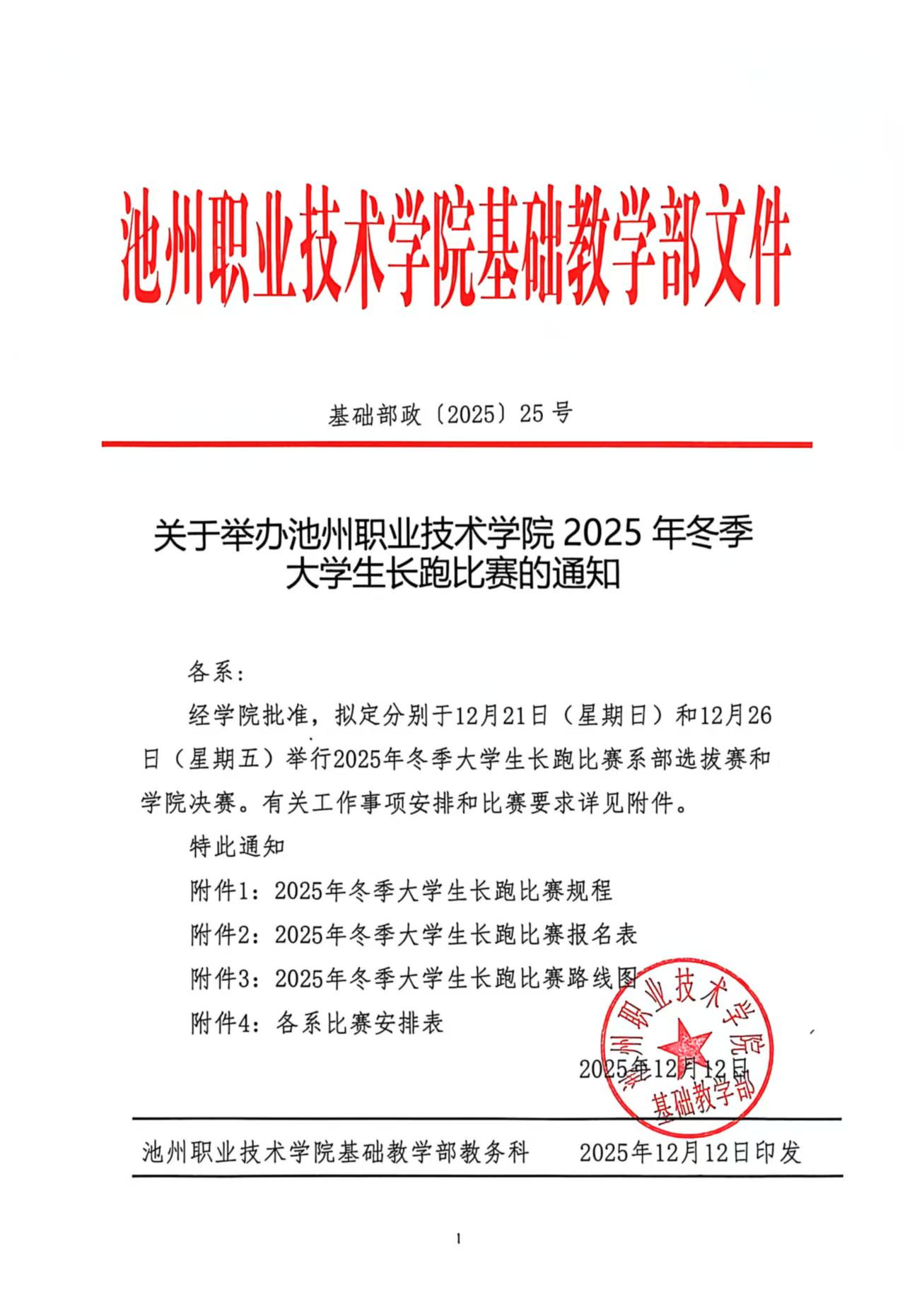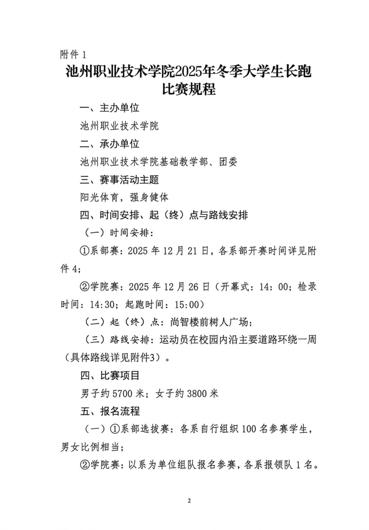 关于举办池州职业技术学院2025年冬季大学生长跑比赛的通知