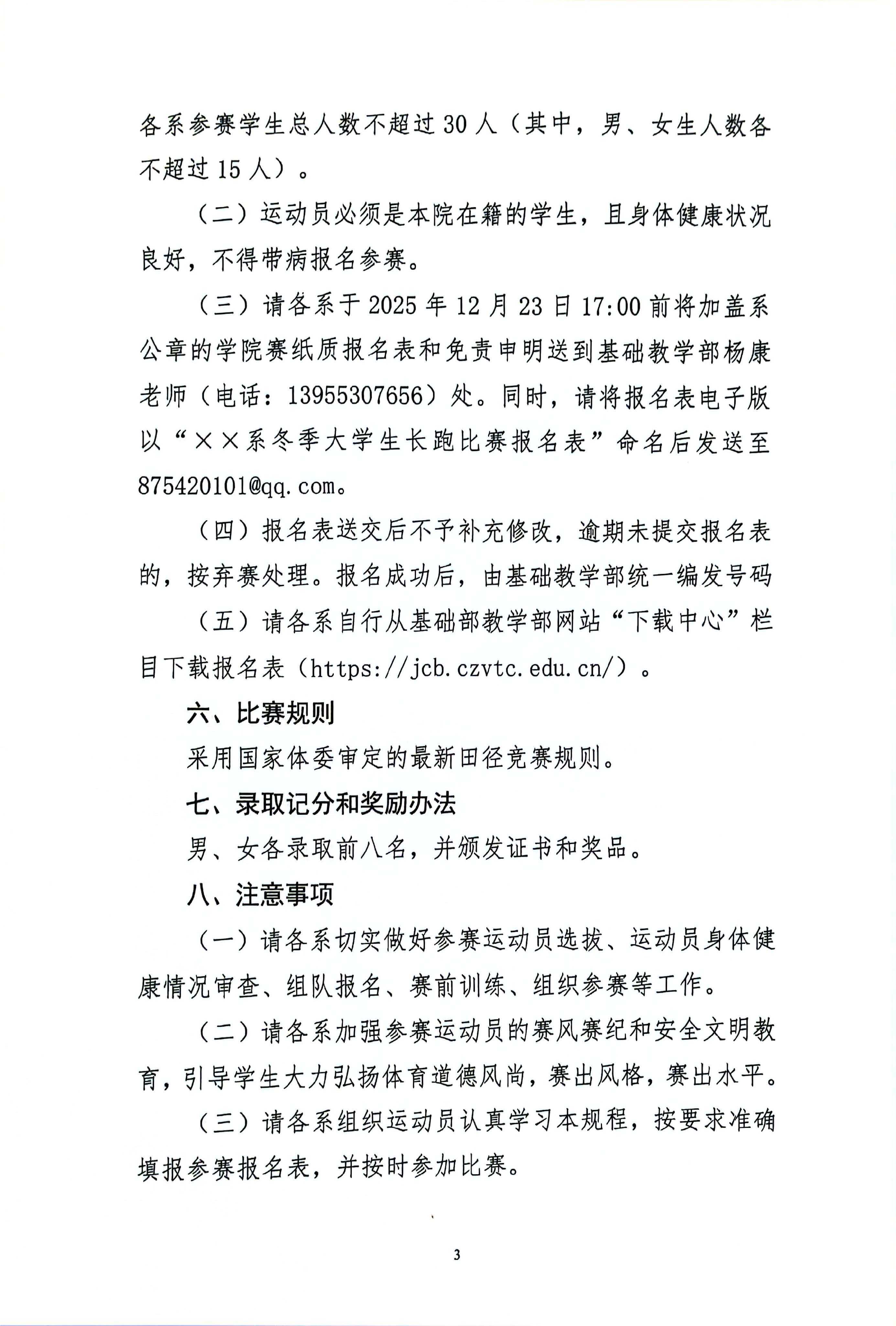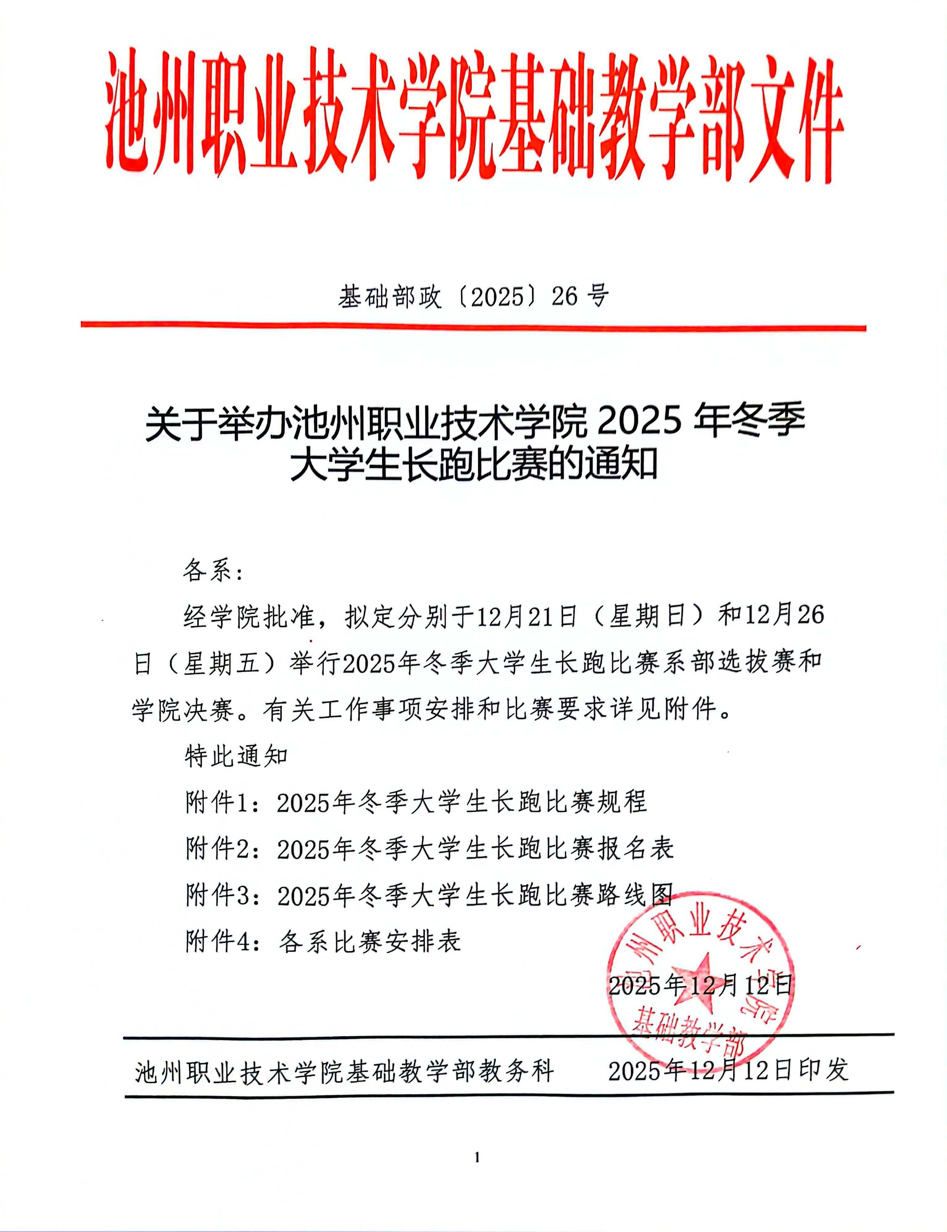 关于举办池州职业技术学院2025年冬季大学生长跑比赛的通知