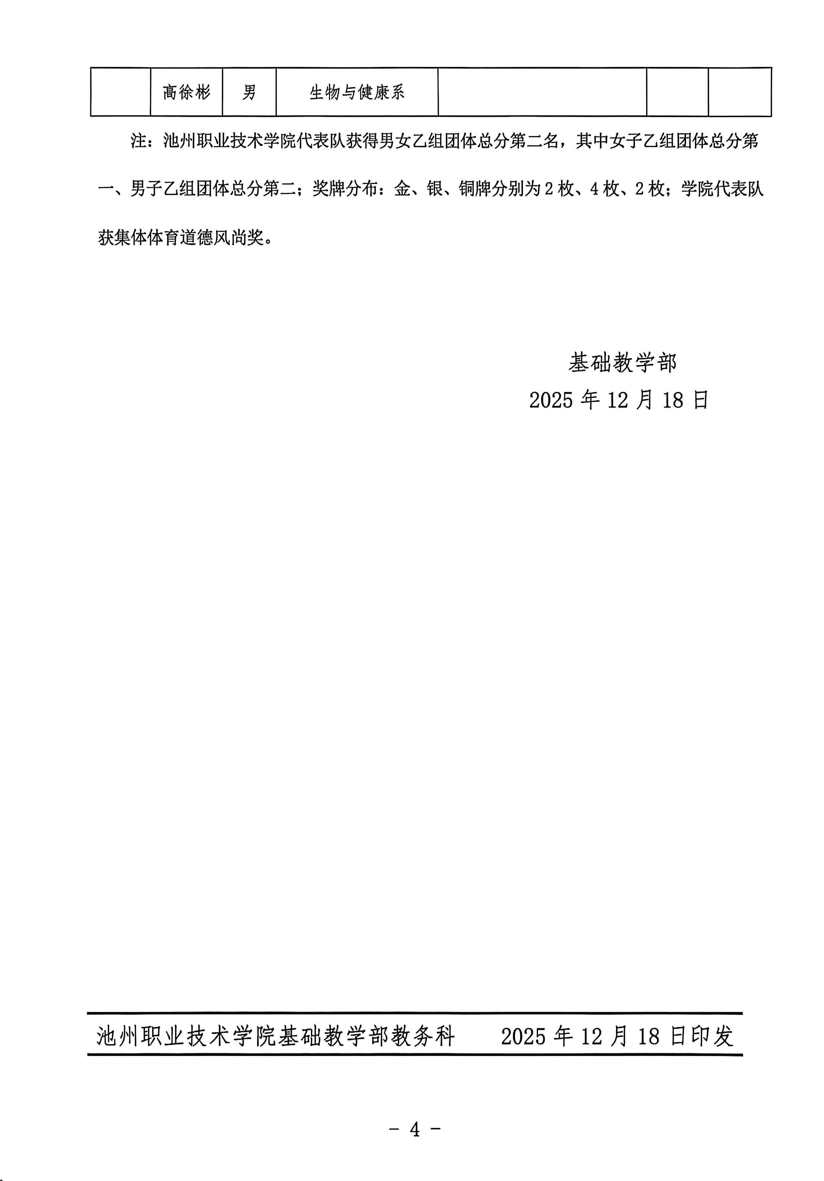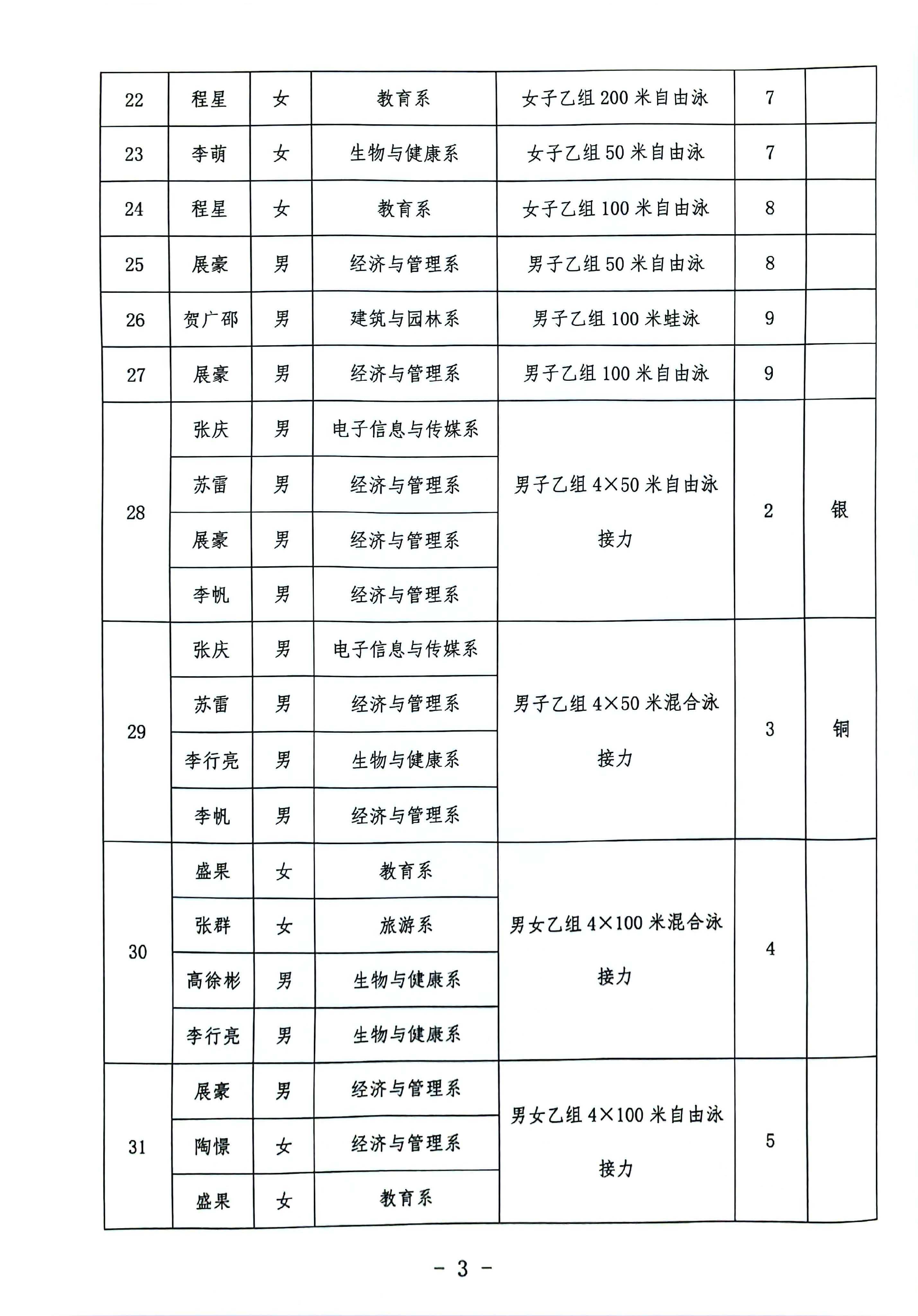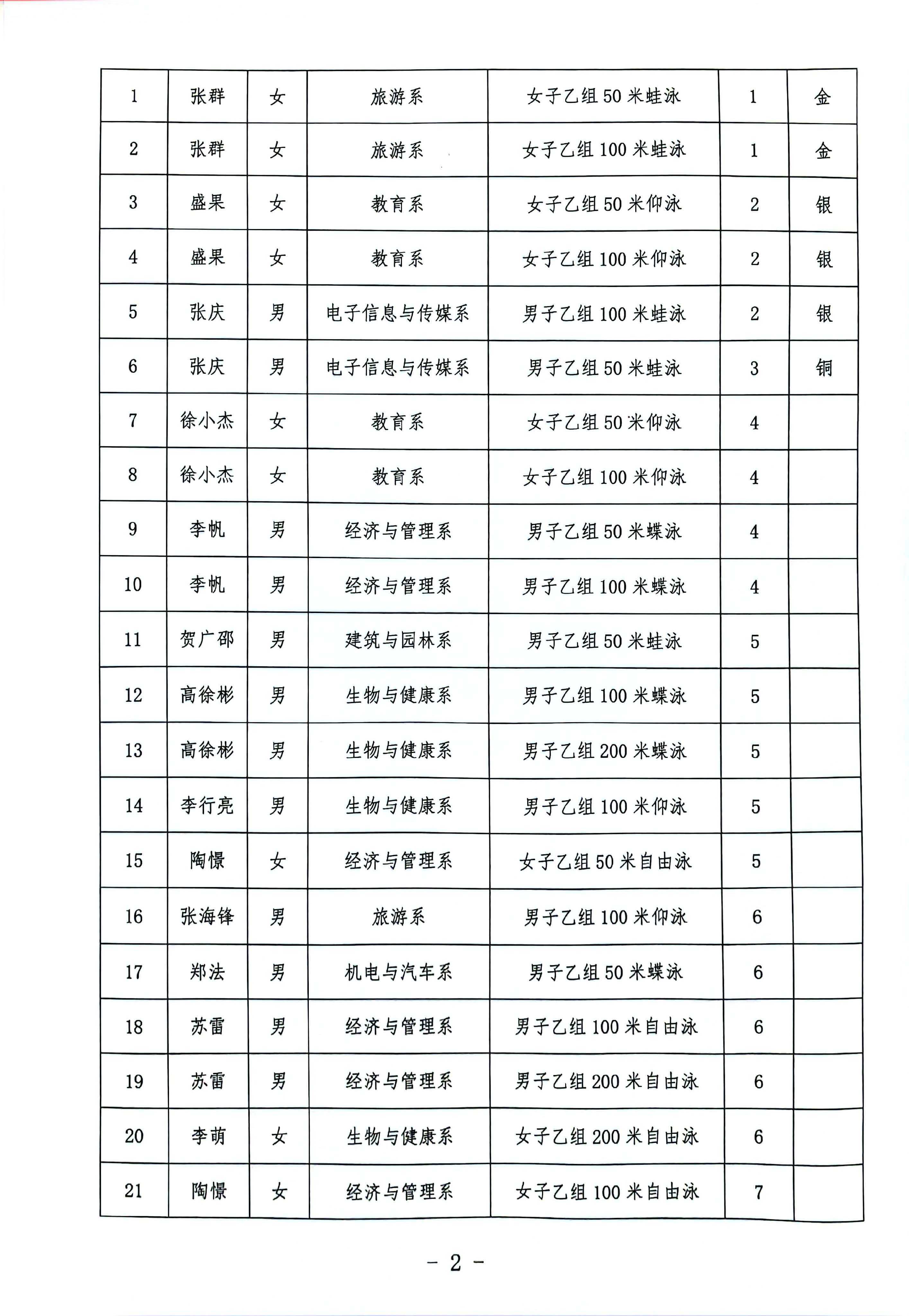 关于公布第24届中国大学生游泳比赛池州职业技术学院代表队获奖情况的通知