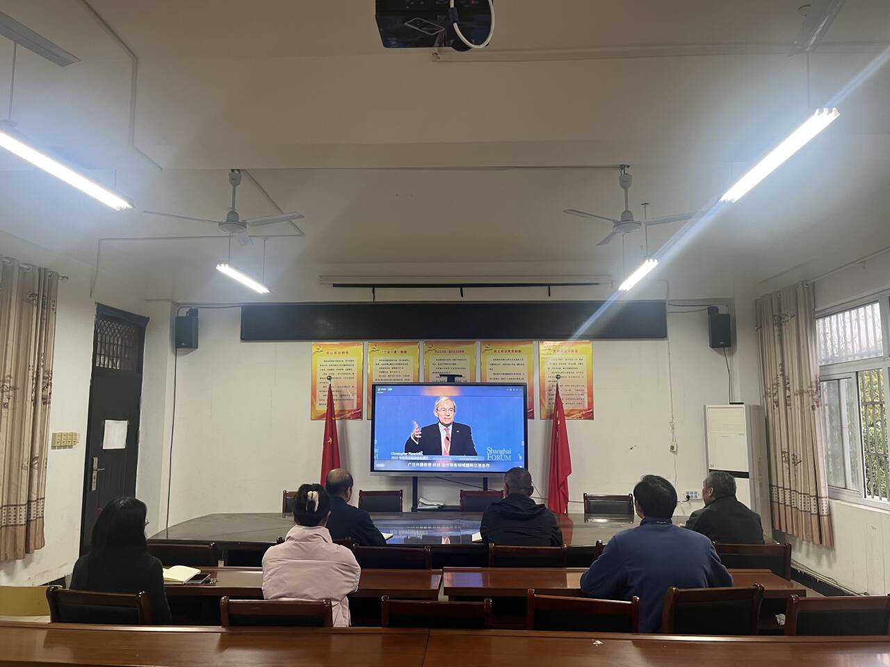 收看过程中,全体与会人员聚精会神,认真聆听记录。视频中关于教育对外开放对于推动教育自身改革、培养具备全球竞争力创新人才、促进文明互鉴、展现国家形象等方面的重要论述,引起了大家的强烈共鸣和深入思考。